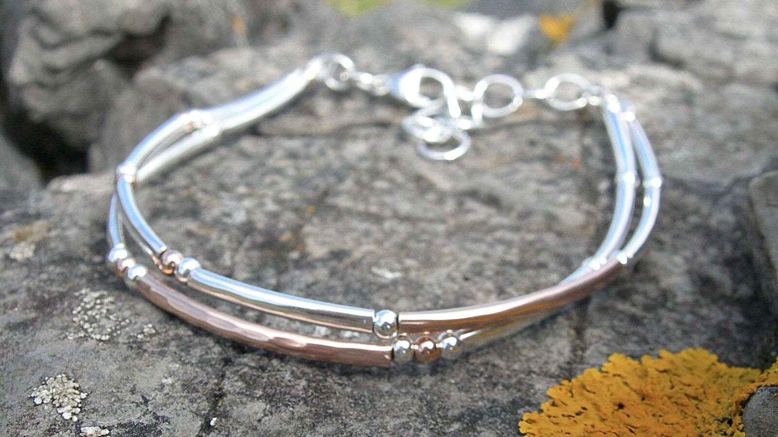 Hammered Sterling Silver and Filled Gold Oval Earrings